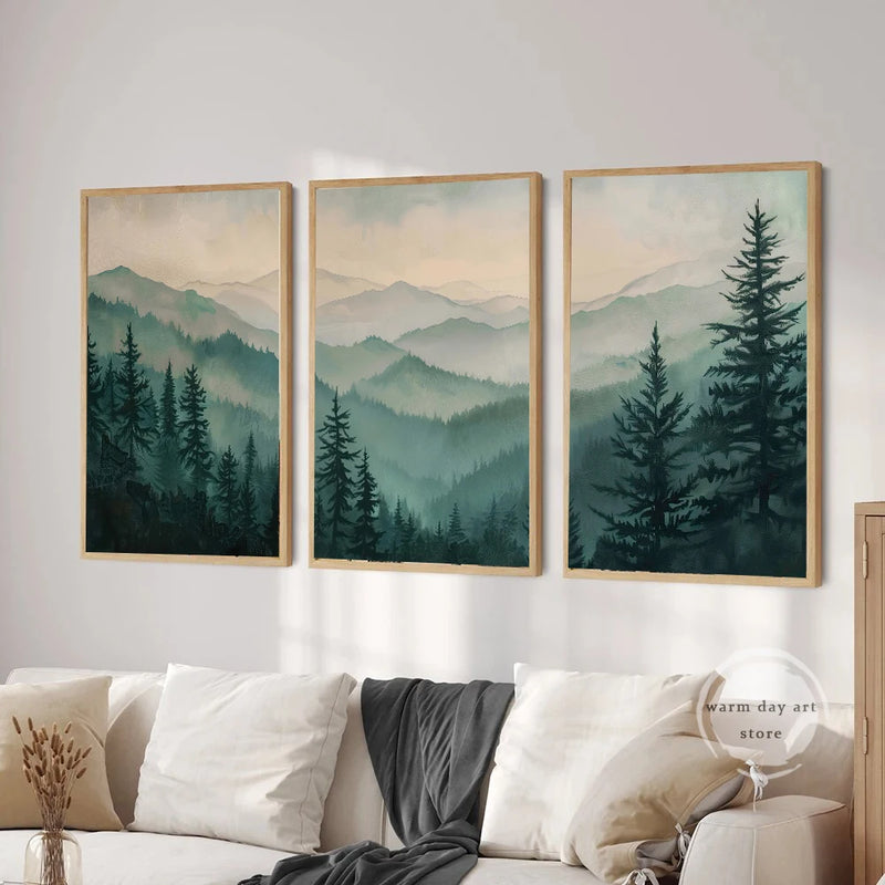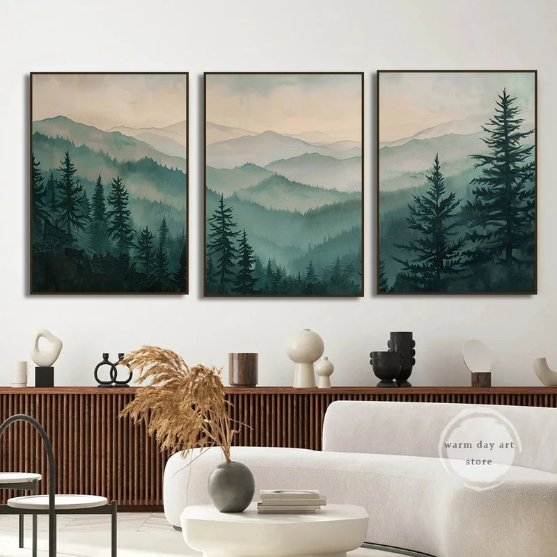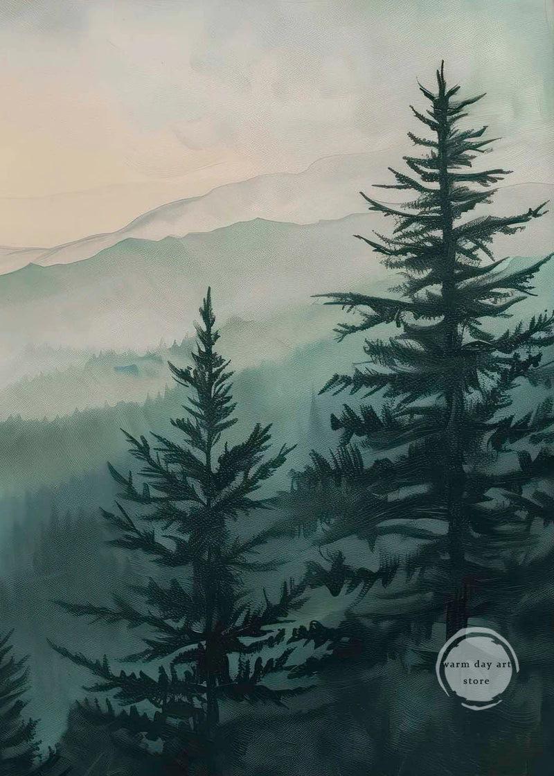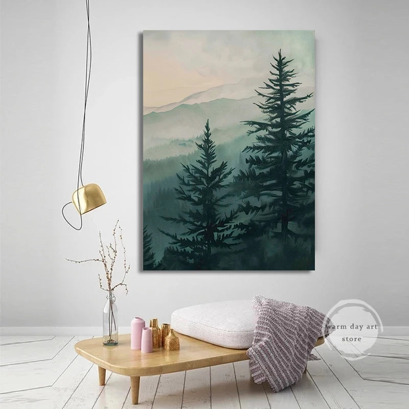 Nom du produit Affiche aquarelle paysage de forêt de pins décor mural naturel