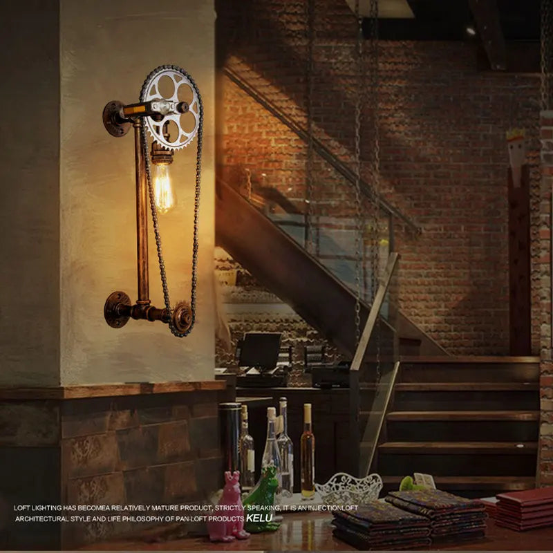 L'applique murale loft vintage est constituée de matériaux de qualité supérieure. Son corps en fer noir lui confère un aspect brut et authentique, typique du style industriel. Le design unique de cette applique est renforcé par une chaine de pignons, qui rappelle l'univers des machines d'antan. Son abat-jour sans ombre permet une diffusion optimale de la lumière, créant une atmosphère chaleureuse et accueillante.