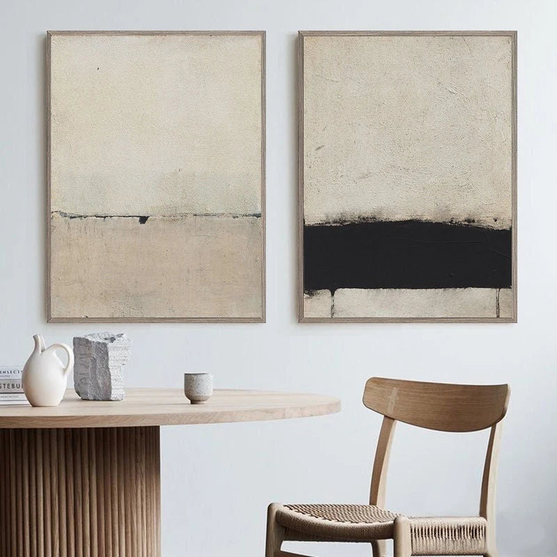 Les grandes peintures murales abstraites modernes conviennent parfaitement à divers styles de décoration, qu'il s'agisse d'un intérieur scandinave minimaliste, d'un espace industriel chic ou d'un décor moderne et épuré. Grâce à leur design contemporain et à leur palette de couleurs neutres, ces œuvres s'intègrent harmonieusement dans n'importe quelle pièce. Imaginez-les suspendues au-dessus d'un canapé élégant dans votre salon, apportant une dimension artistique à votre espace de vie. Ou encore dans votre chambre, où elles créent une ambiance apaisante et inspirante, propice à la détente.
