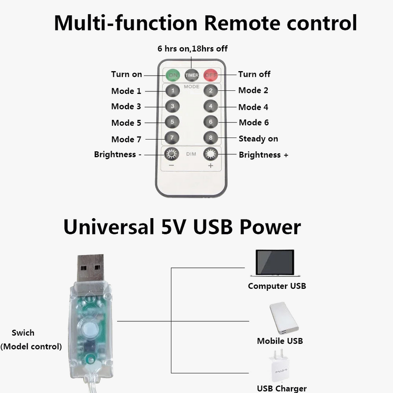 Les différentes couleurs de lumière disponibles vous permettent de jouer avec les ambiances : optez pour un éclairage chaleureux pour les soirées d'hiver ou des couleurs vives pour les événements festifs. Grâce à son design discret, cette guirlande peut également servir de décoration permanente, ajoutant une note de lumière et de convivialité à votre espace de vie.
