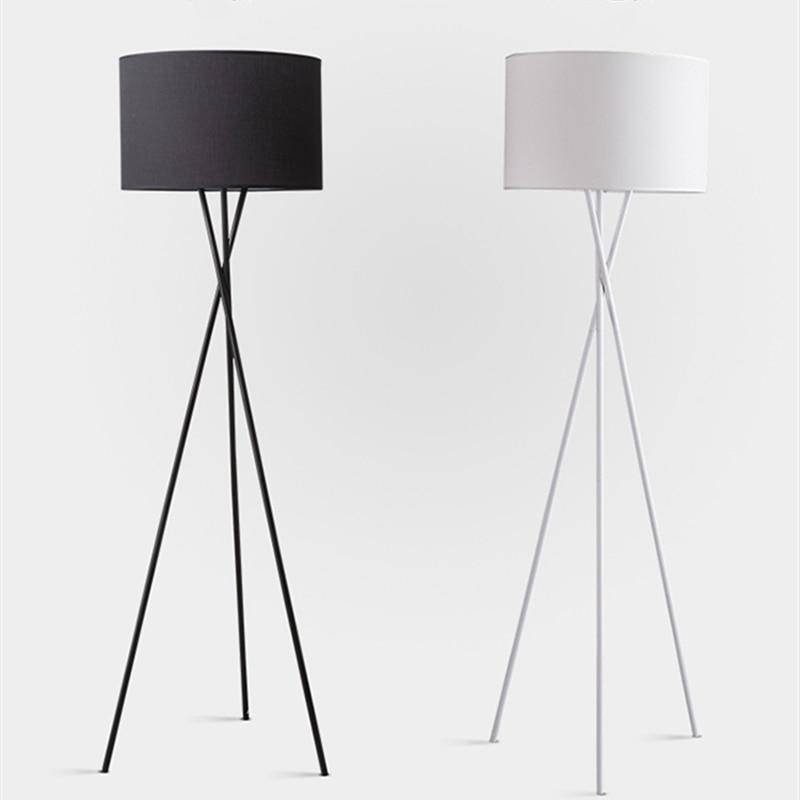 Lampadaire design led tripod avec abat-jour en tissu noir ou blanc