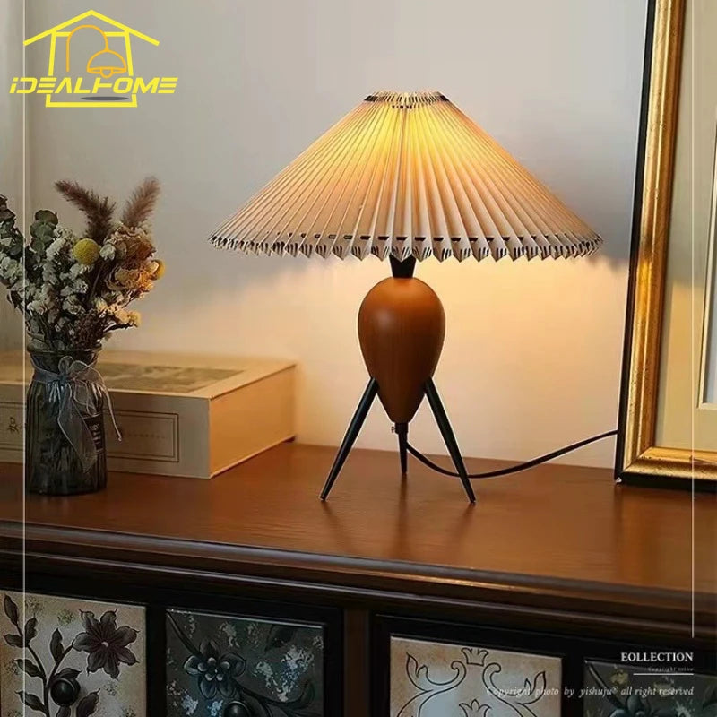 Nom du produit Lampe à poser plissée en bois massif et tissu design moderne