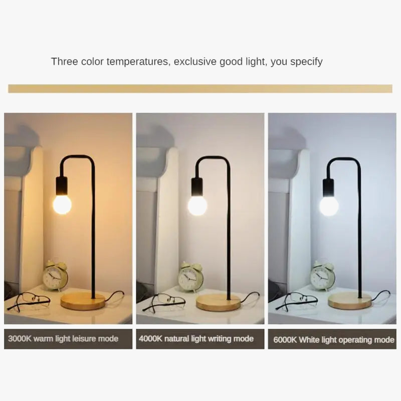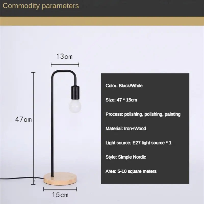Nom du produit | Lampe de table nordique noir blanc loft lampe de bureau vintage en bois e27 ampoule lampes de table en métal fer luminaires |