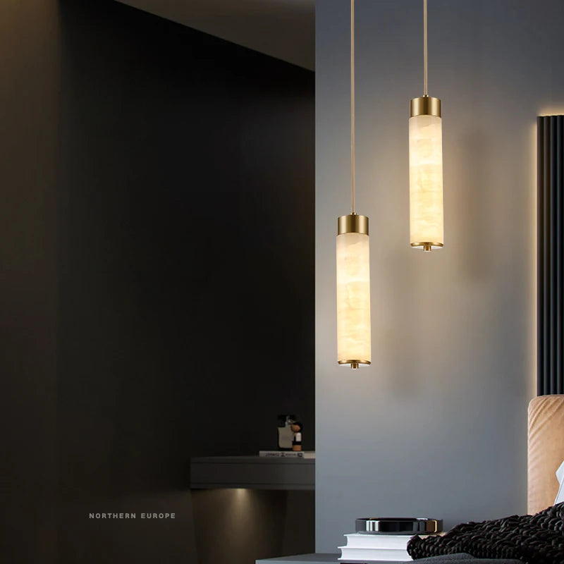 Suspension led en marbre et laiton avec cordon réglable nordique
