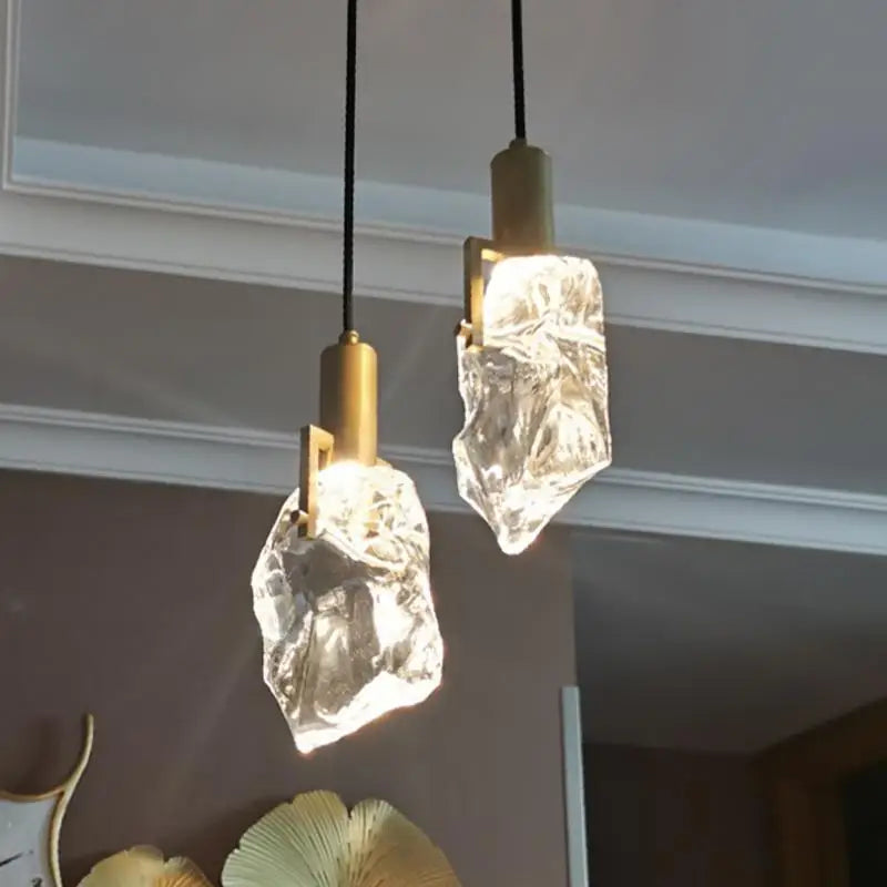 Nom du produit | Suspension design nordique ice en cristal et cuivre pour bar ou table |