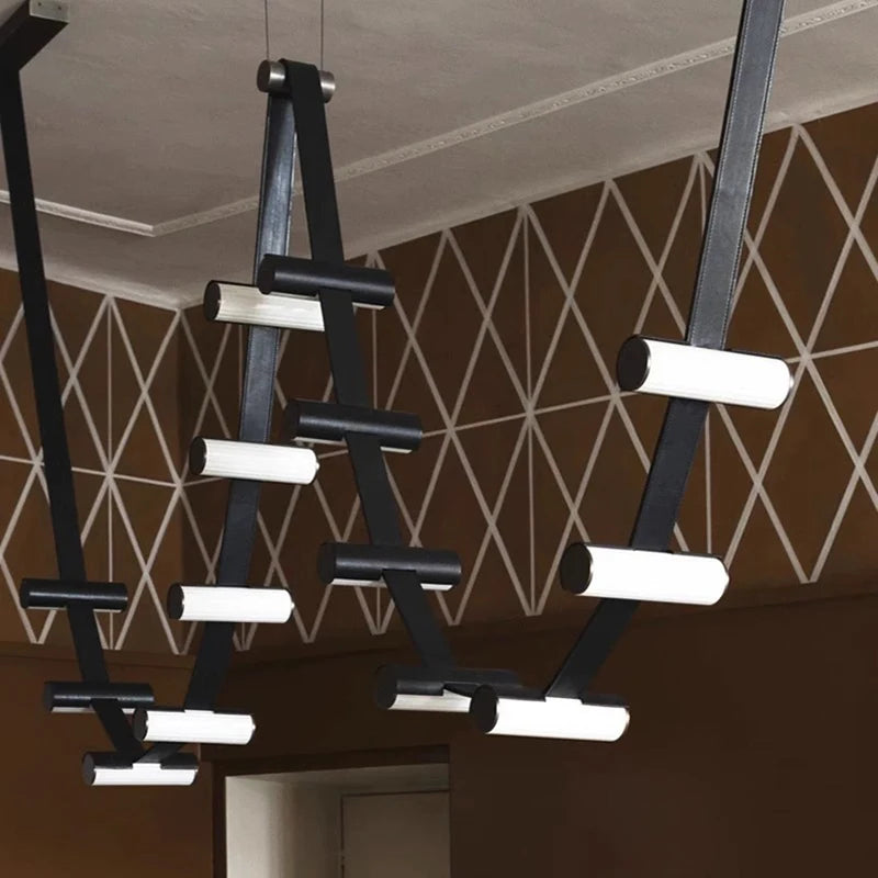 Lustre art déco led avec barre lumineuse en cuir artificiel