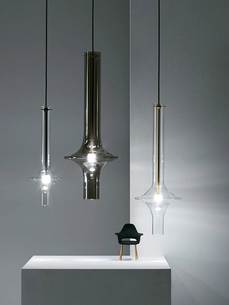 Lustre design italien en verre et bambou pour restaurants et boutiques