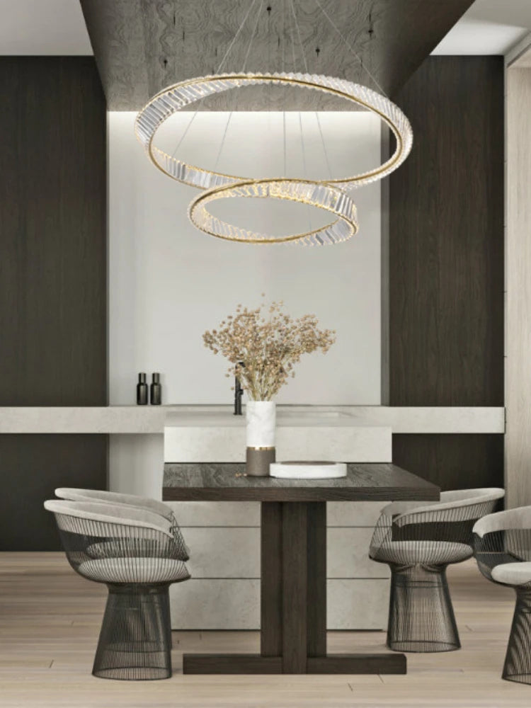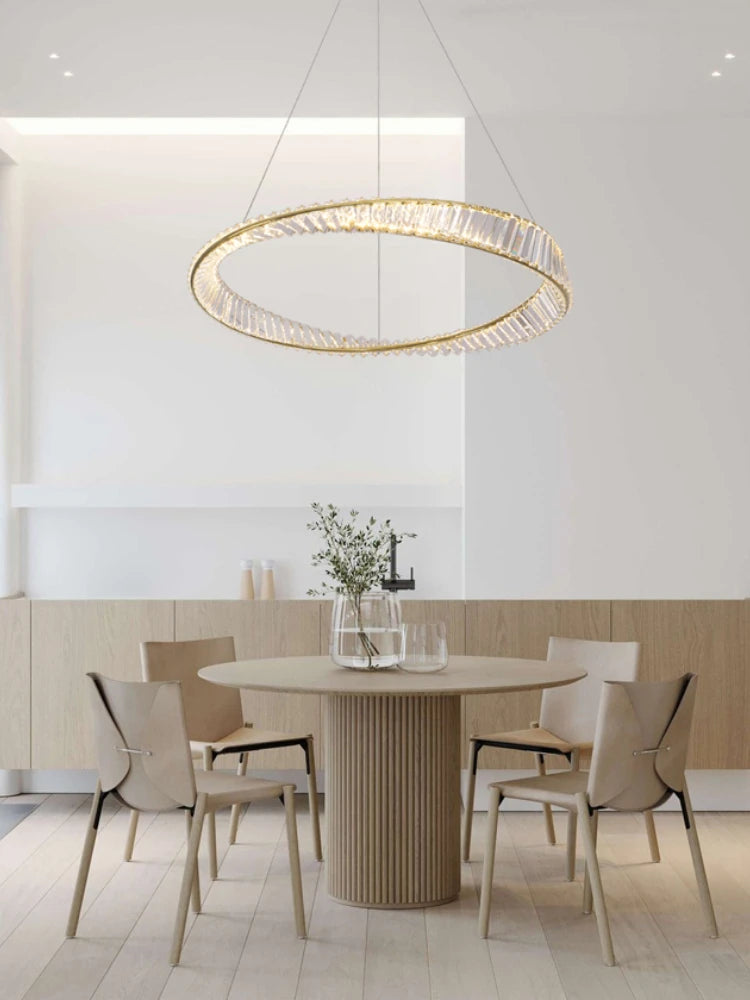 Le lustre en cristal est le choix parfait pour ceux qui recherchent un éclairage à la fois fonctionnel et décoratif. Avec son design circulaire, il capte l'attention tout en s'intégrant harmonieusement dans divers styles d’intérieur, qu'il s'agisse d'un décor moderne, scandinave, ou même industriel. Sa finition en acier inoxydable brossé confère une touche contemporaine, tandis que les éclats de cristal ajoutent une dimension luxueuse à l'ensemble.