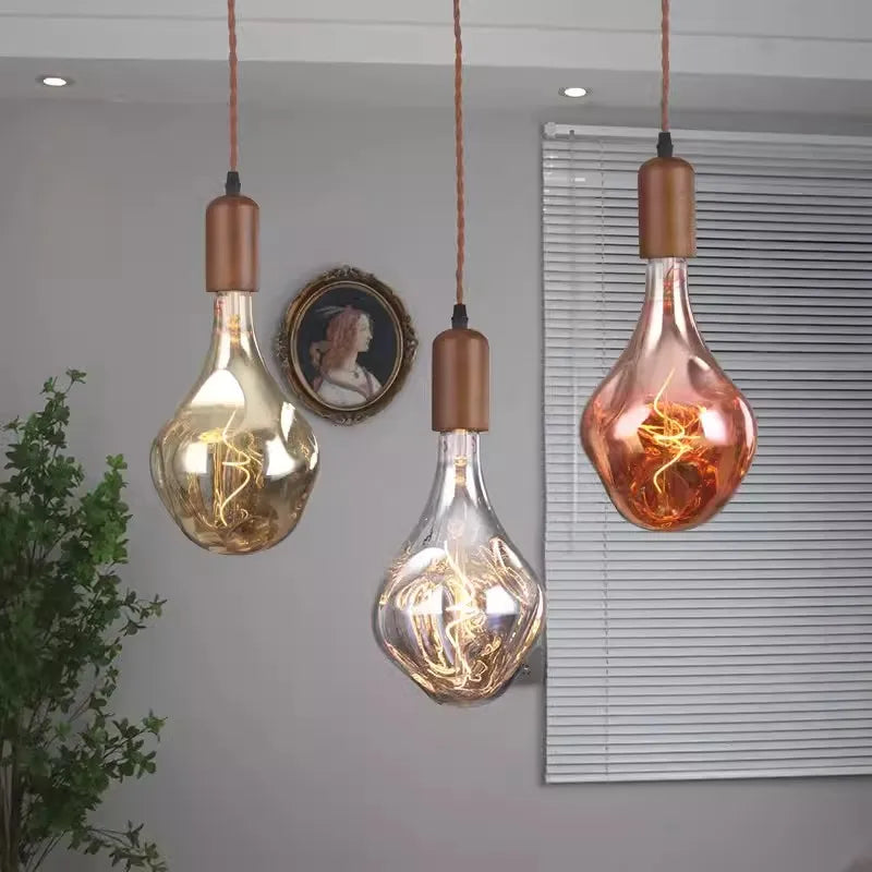 Lustre en verre d'art rétro en bois massif créatif pour décoration ...