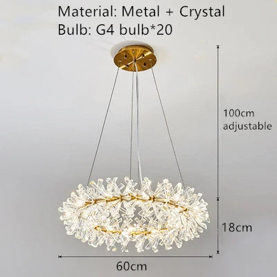 | Nom du produit | Lustre led cristal clair rond avec fil métallique doré réglable |