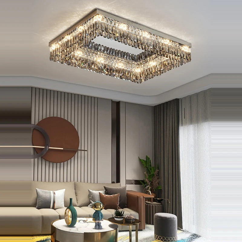 Ce lustre LED dispose d'une forme ronde rectangulaire qui est à la fois moderne et élégante. Il est fabriqué à partir de cristal de haute qualité et d'acier inoxydable, lui donnant une brillance éblouissante et une durabilité exceptionnelle. La finition en acier poli ajoute une touche de sophistication, rendant ce lustre parfait pour une utilisation dans des espaces tels que le salon, la salle à manger, la chambre à coucher ou même le hall d'entrée.