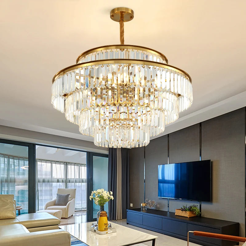 Lustre moderne en cristal doré pour éclairage décoratif intérieur
