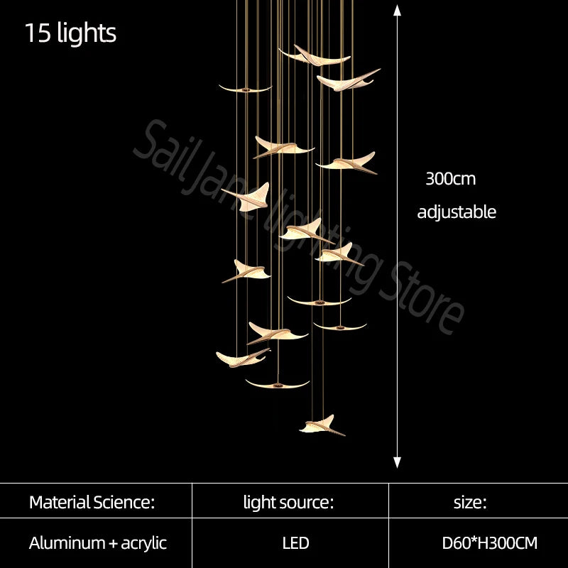 Nom du produit Lustre moderne led mouette duplex cage d'escalier nordique
