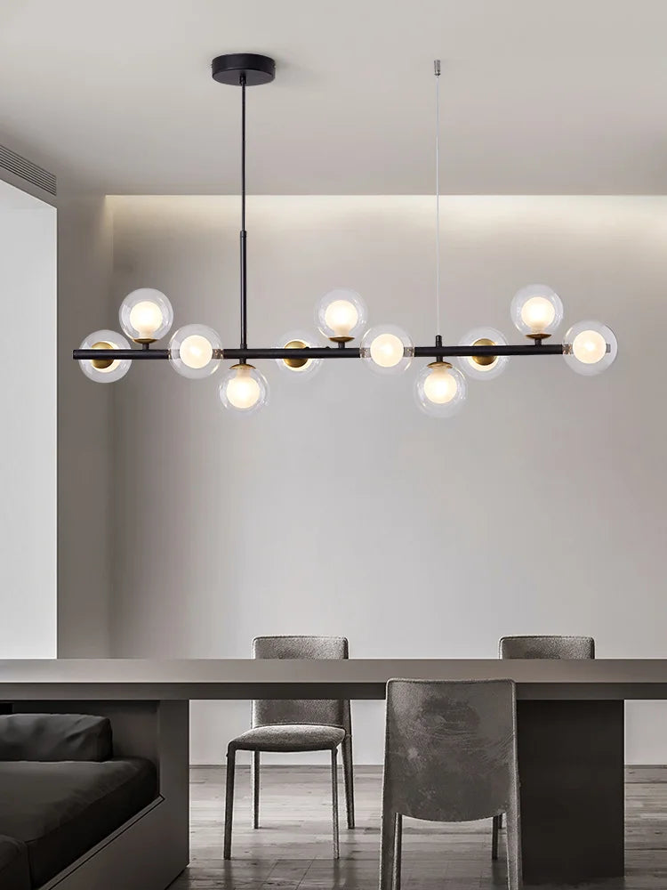 Le lustre moderne minimaliste est idéal pour illuminer des espaces allant de 10 à 15 mètres carrés. Grâce à son éclairage LED intégré, il vous permet de profiter d'une lumière douce et agréable, tout en étant économe en énergie. Sa conception en métal avec une finition en fer assure non seulement une durabilité exceptionnelle, mais ajoute également une touche de sophistication à votre décor. Ce luminaire est parfaitement adapté pour être suspendu au-dessus d'une table à manger, d'un bar ou dans un hall d'hôtel, apportant ainsi une touche de modernité à chaque pièce.
