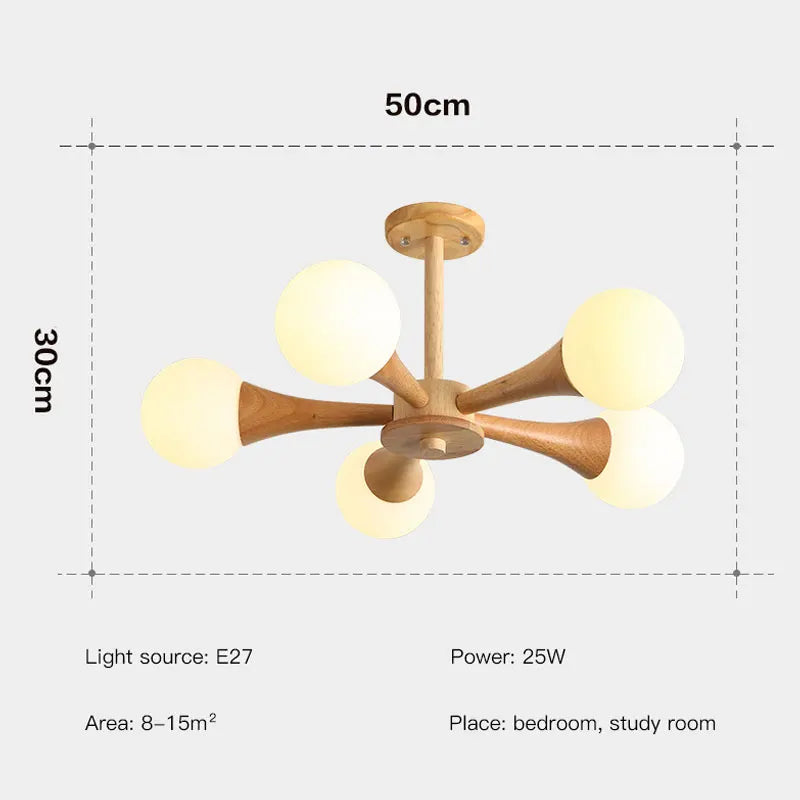 Ce lustre, avec ses lignes épurées et son esthétique minimaliste, incarne parfaitement le style nordique. Fabriqué en bois de haute qualité et doté de globes en verre dépoli, il diffuse une lumière douce et chaleureuse qui crée une ambiance apaisante. Que ce soit dans votre salon, votre chambre, ou même votre salle à manger, ce lustre s'intègre aisément à tous les décors. Son design moderne s'harmonise aussi bien avec des meubles en bois clair qu'avec des éléments métalliques, vous permettant ainsi de personnaliser votre espace selon vos envies.