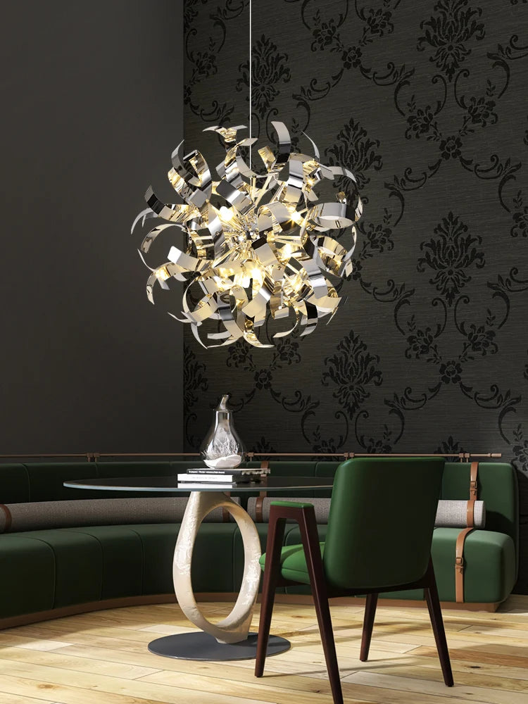 Lustre post-moderne de luxe en acier inoxydable pour hôtel