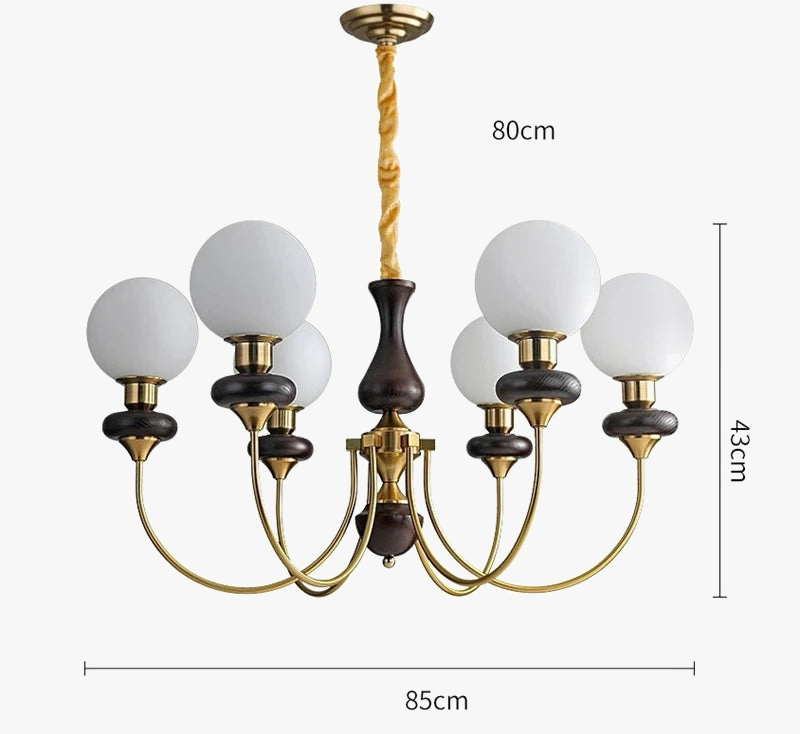 Ce lustre se distingue par sa structure en métal robuste, qui lui confère une durabilité à toute épreuve. Les bras en métal, soigneusement travaillés, s’entrelacent pour créer une silhouette harmonieuse, tandis que les abat-jours en verre dépoli diffusent une lumière douce et chaleureuse. Ce mélange de métal et de verre donne à ce luminaire un aspect à la fois industriel et vintage, idéal pour ceux qui aiment le style traditionnel avec une touche moderne.