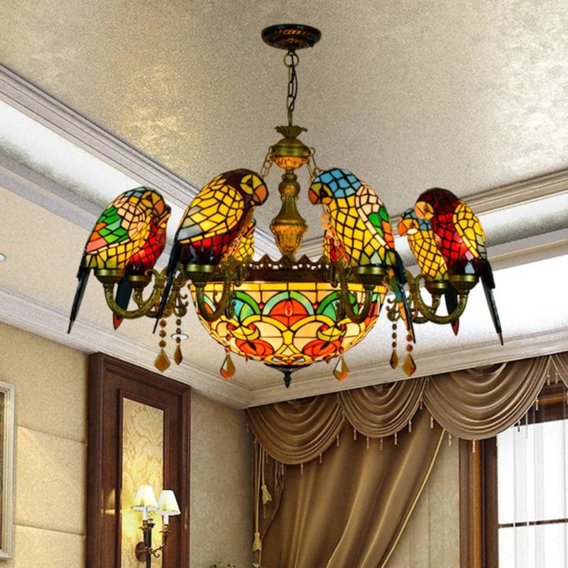 Nom du produit | Lustre tiffany vitrail lumineux oiseau perroquet design élégant intérieur |