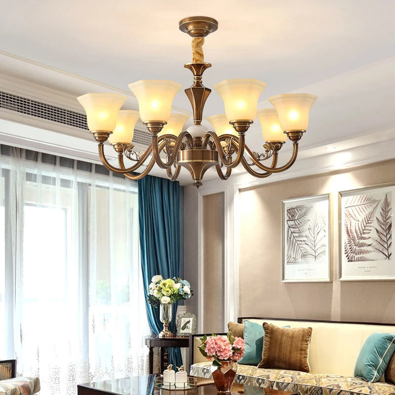 Fabriqué en cuivre de haute qualité, ce lustre allie durabilité et esthétique. Le choix du cuivre n’est pas anodin : ce matériau est non seulement résistant, mais il apporte également une touche vintage qui ne manquera pas d'attirer les regards. L'abat-jour en verre dépoli, quant à lui, joue un rôle essentiel dans la diffusion de la lumière. Il permet de créer une ambiance chaleureuse, tout en préservant une luminosité douce, idéale pour des moments de détente ou de convivialité.