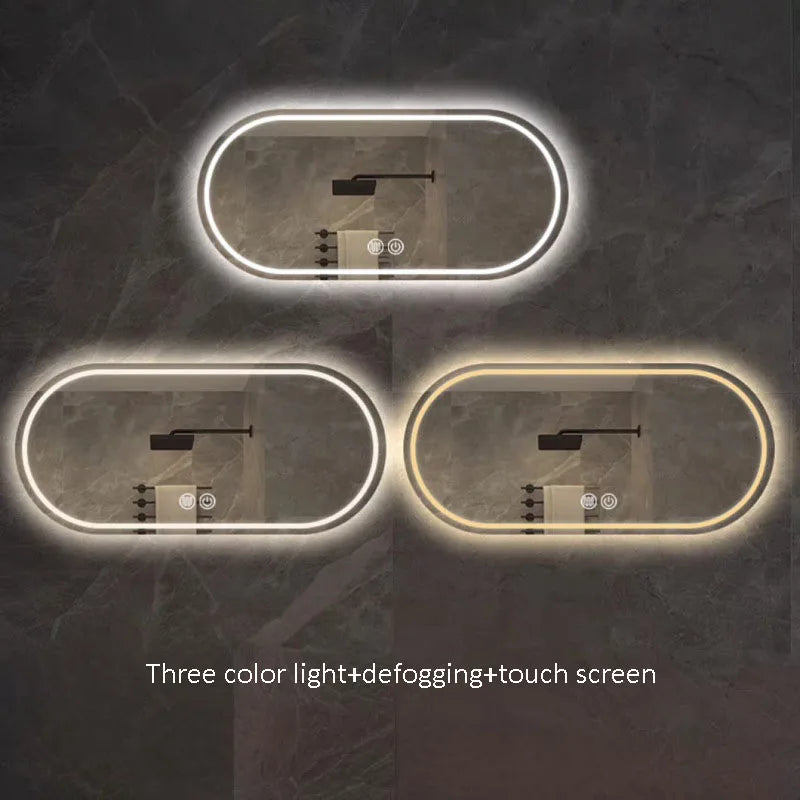 Miroir intelligent elliptique lumineux anti-buée trois couleurs mural