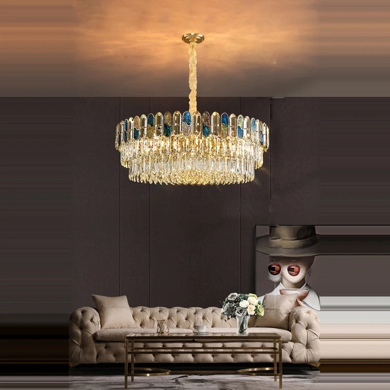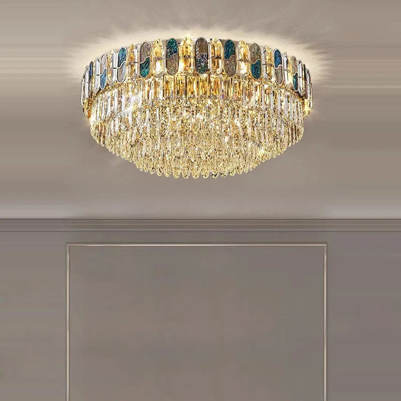 Nom du produit | Plafonnier led art déco en cristal doré et acier inoxydable |