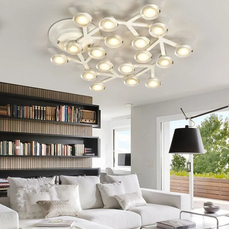 Ce plafonnier LED est conçu pour illuminer des espaces allant de 10 à 15 mètres carrés, ce qui le rend idéal pour une utilisation dans des pièces telles que la cuisine, la salle à manger ou le foyer. Avec ses huit sources de lumière, il fournit une luminosité diffuse qui crée une atmosphère chaleureuse et conviviale. Son style minimaliste, associé à des matériaux de qualité, comme le verre et le métal, permet de l'intégrer facilement dans différents décors, qu'ils soient scandinaves, industriels ou modernes.