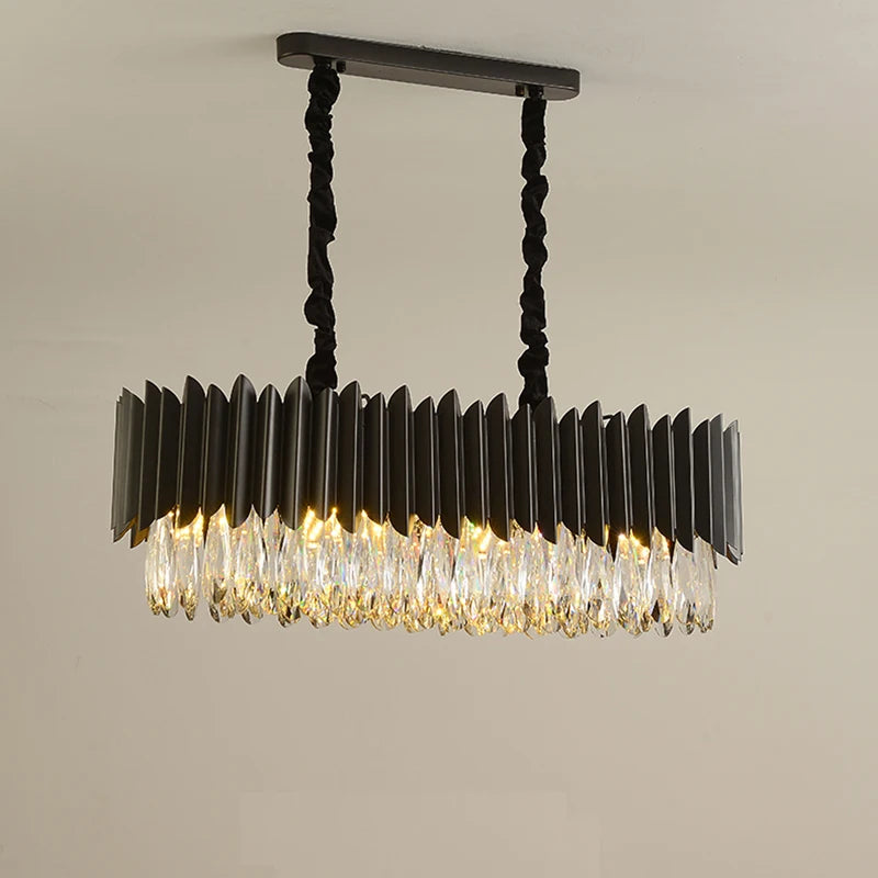 Cette suspension se distingue par son design contemporain, alliant le noir profond du cristal à la chaleur dorée de l'or. Les matériaux utilisés, notamment l'acier inoxydable et le cristal, garantissent non seulement une durabilité exceptionnelle, mais aussi une brillance qui captera l'œil de tous vos invités. La finition polie de l'acier ajoute une touche de modernité, tandis que le cristal crée des jeux de lumière fascinants, diffusant une atmosphère chaleureuse dans votre pièce.