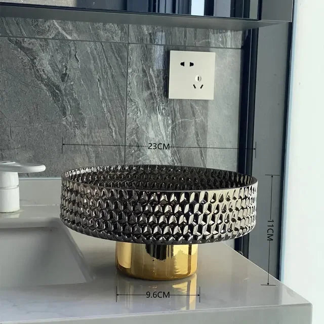 Le vase en verre doré se distingue par son design élégant et intemporel. Sa finition dorée capte la lumière de manière exceptionnelle, créant des reflets chaleureux qui illuminent votre pièce. Grâce à son style européen, il s'adapte harmonieusement à divers environnements, que ce soit dans un intérieur contemporain ou dans une décoration plus classique.